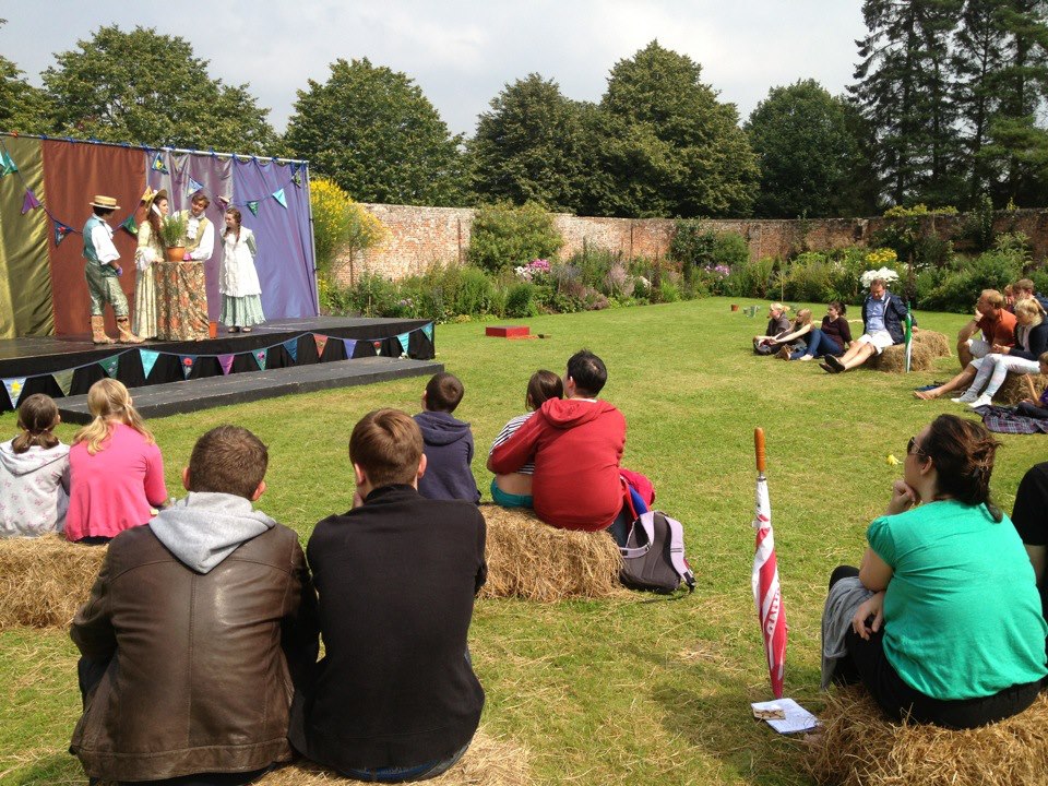 I have been delighted to be involved in a Wellcome funded Arts Award with the Lydiard Park Education Team and Sixth Sense Theatre Company. The project is called ‘Science and Superstition’ and the central activity, a play telling the story of Lady Johanna St John (1631-1704) and her ‘booke’, was performed this summer in the walled garden at Lydiard Park. Lady Johanna was a well known society hostess and is now distinguished as a herbalist whose collection of remedies, referred to as her “Booke” now forms part of the Wellcome Trust’s collections. ‘Science and Superstition’ tells the story of her extraordinary life by extensive research into her personal correspondence and her medicinal writings. The play used her story and narrative from the history of medicine in a playful and entertaining manner and used the gorgeous walled garden as a wonderful backdrop.